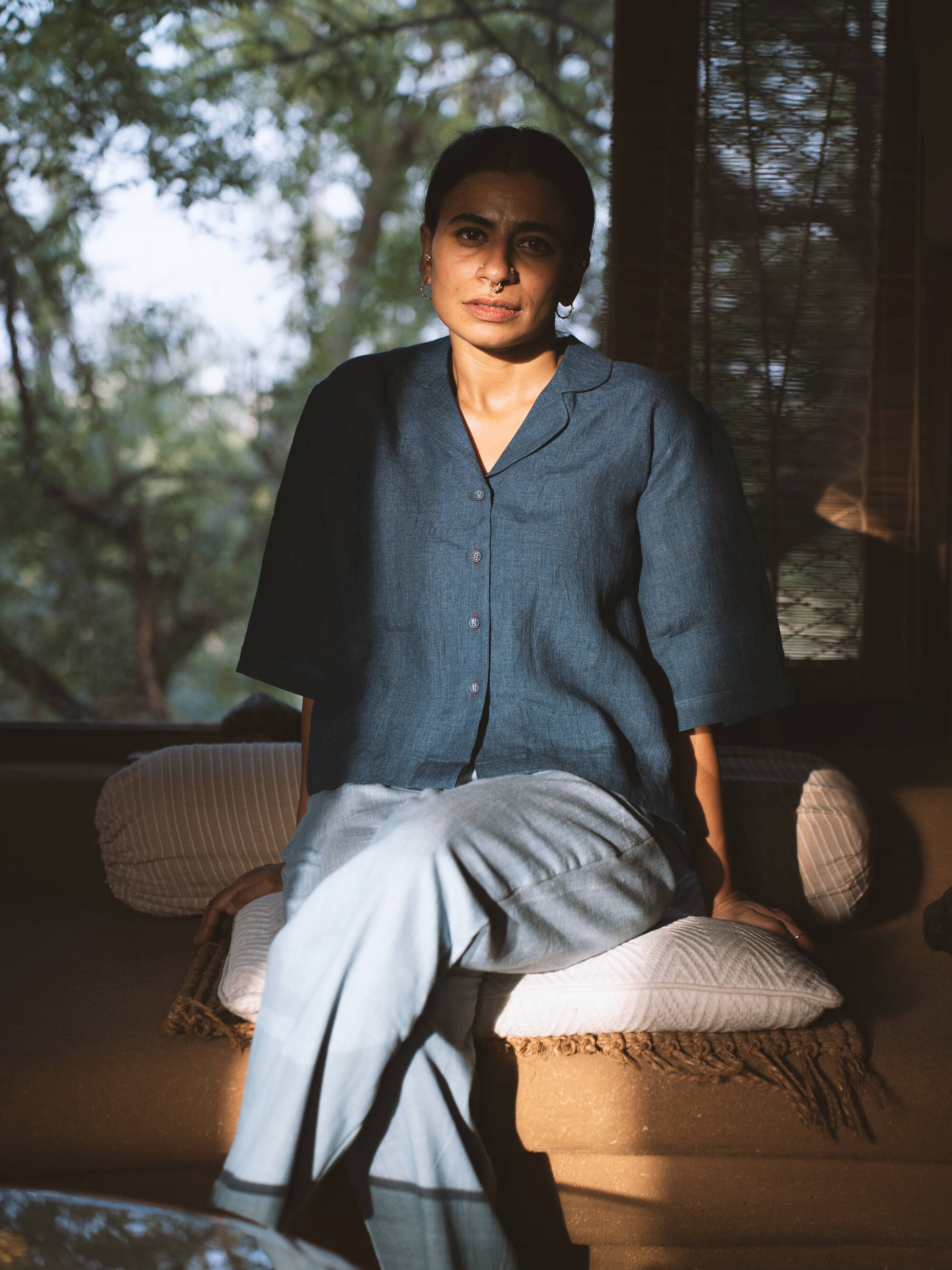 At its core, with N. celebrates simplicity and slowness. The label does not follow seasonal drops. Instead, it introduces pieces organically—when inspiration strikes, or when a textile speaks to them in a way that cannot be ignored. Each garment embraces the quiet irregularities of handloom—loose threads, slight variations, and asymmetry that signal the unmistakable presence of the human hand. It is this celebration of imperfection that defines with N.’s design language.