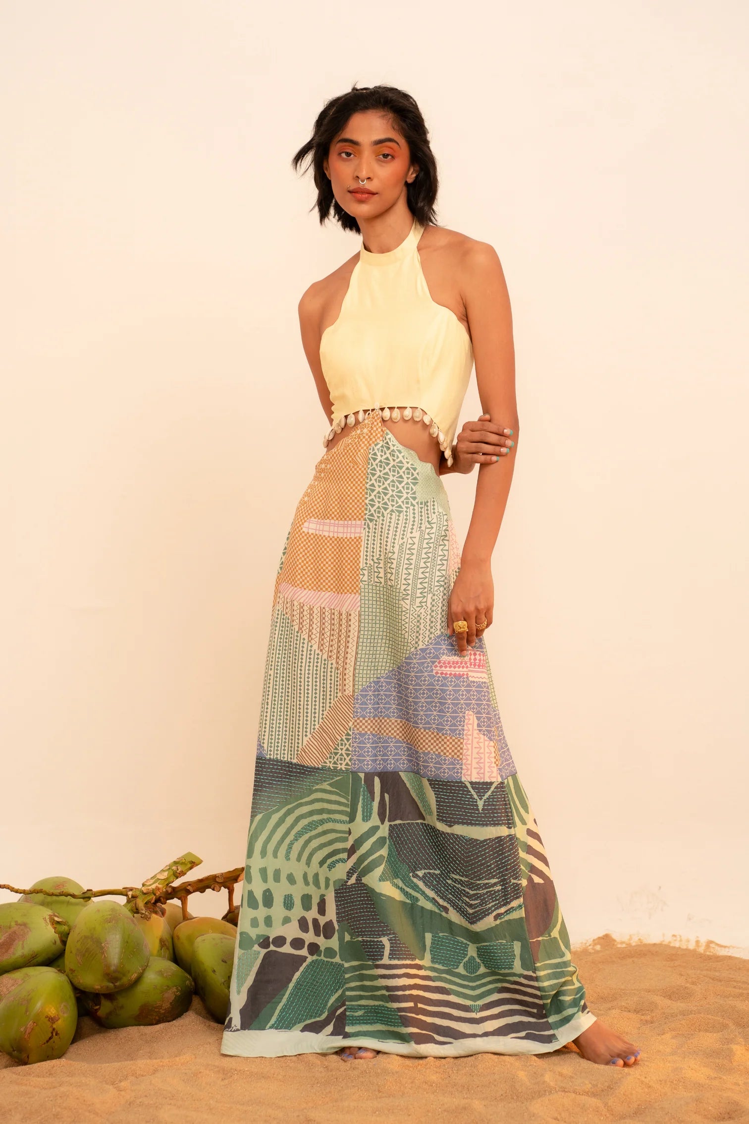 The detachable top and bottom allows you to switch up your look to suit different occasions, with the top featuring cowrie shells and the bottom featuring hand-embroidery by skilled Lambani Artisans, adding a beautiful final touch to the pieces. So, whether you choose to wear it as one-piece or in separate pieces, you'll be sure to make a statement!