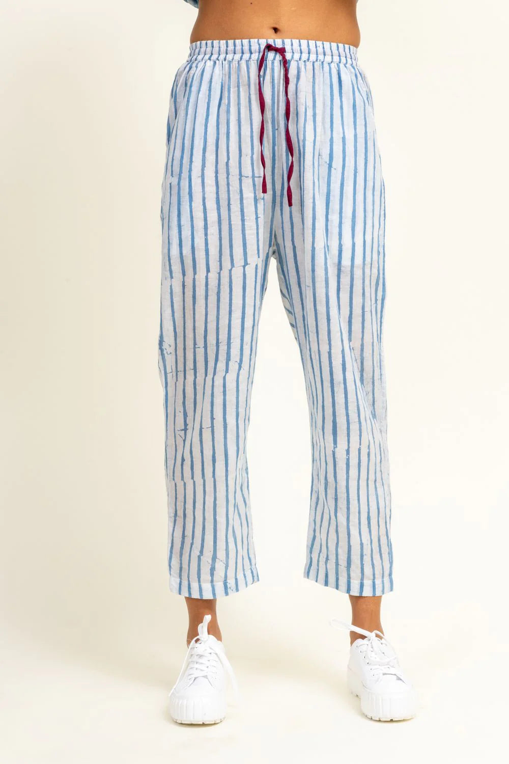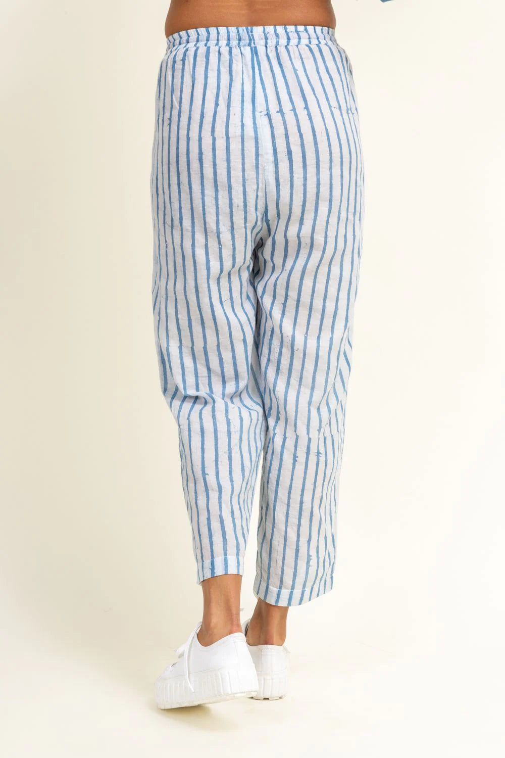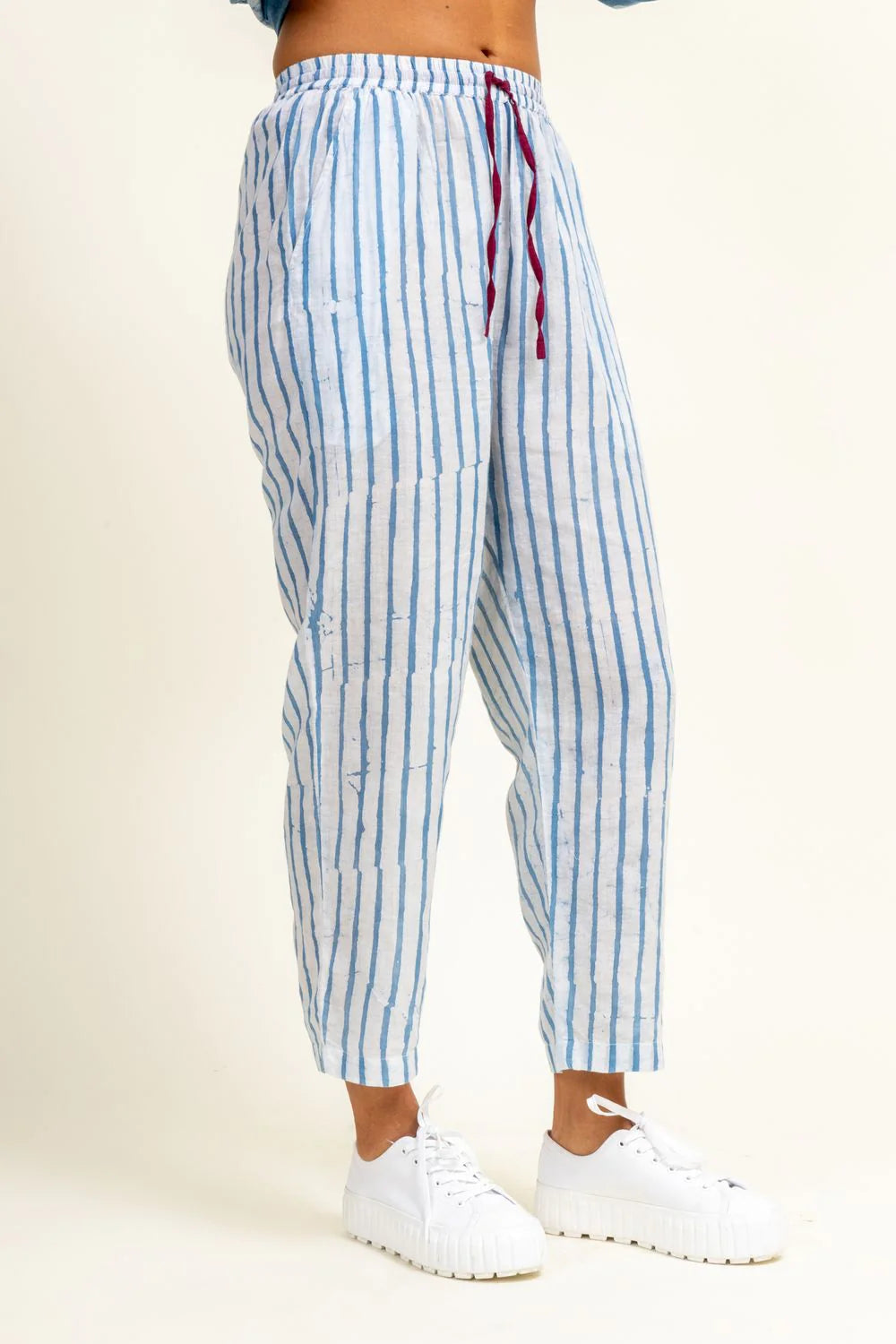 Batik Floral tunic with front placket and curved hem. The tunic had slits and comes with a belt and side pockets. Batik striped elasticated pants.