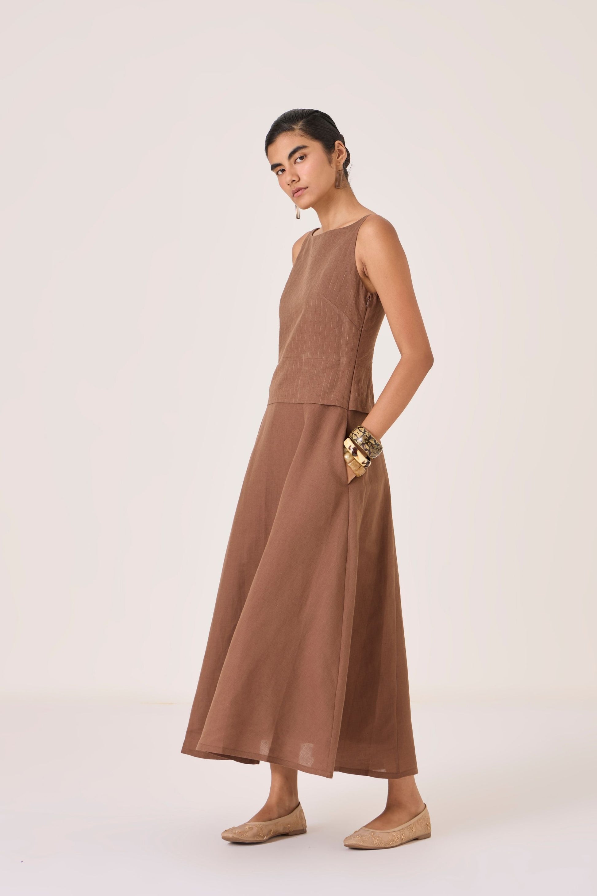 Senaka | Brown Quilted Dress