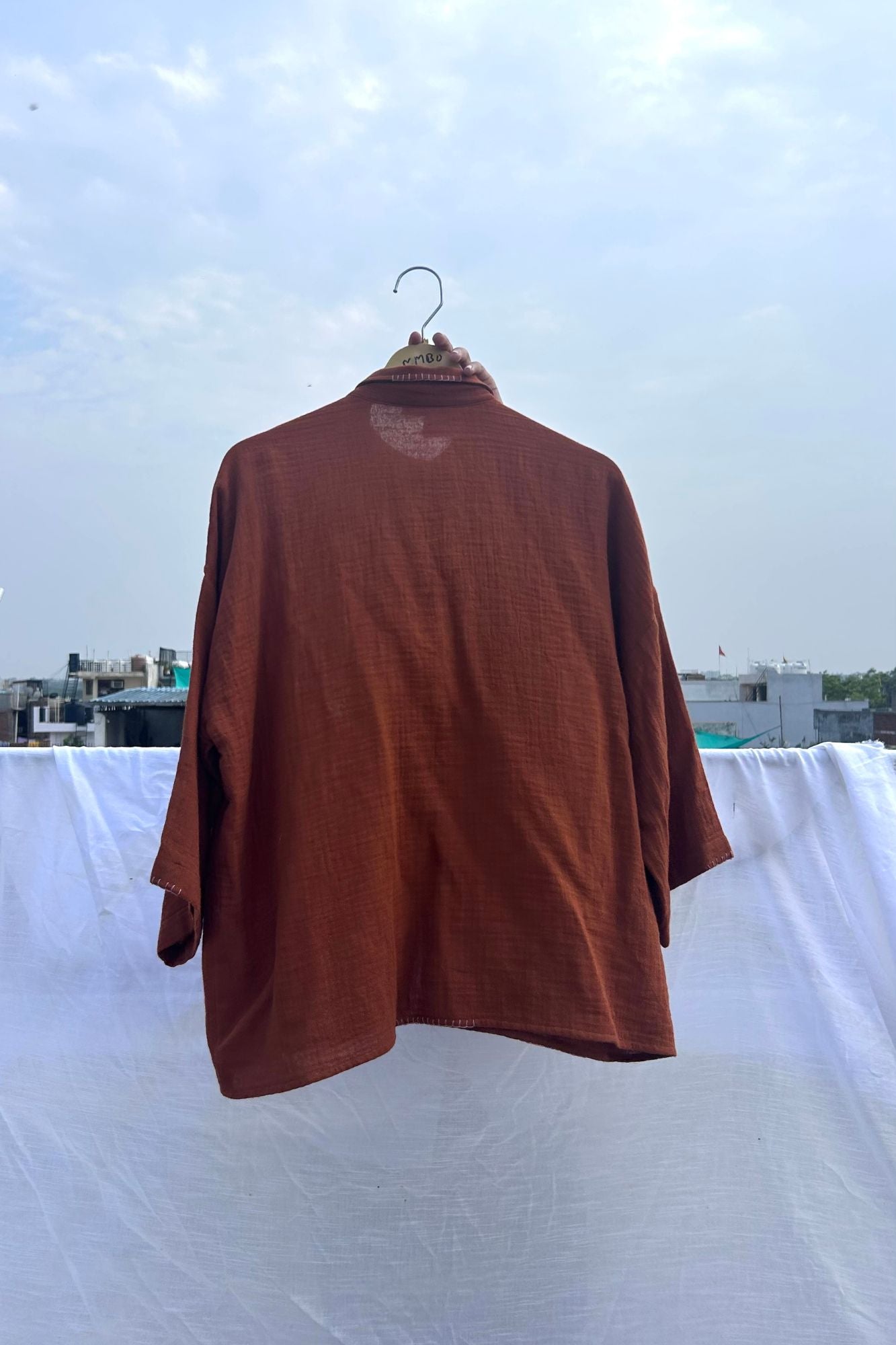Description: Oversized boxy shirt with standout details on the collar, sleeve cuffs, and hem.