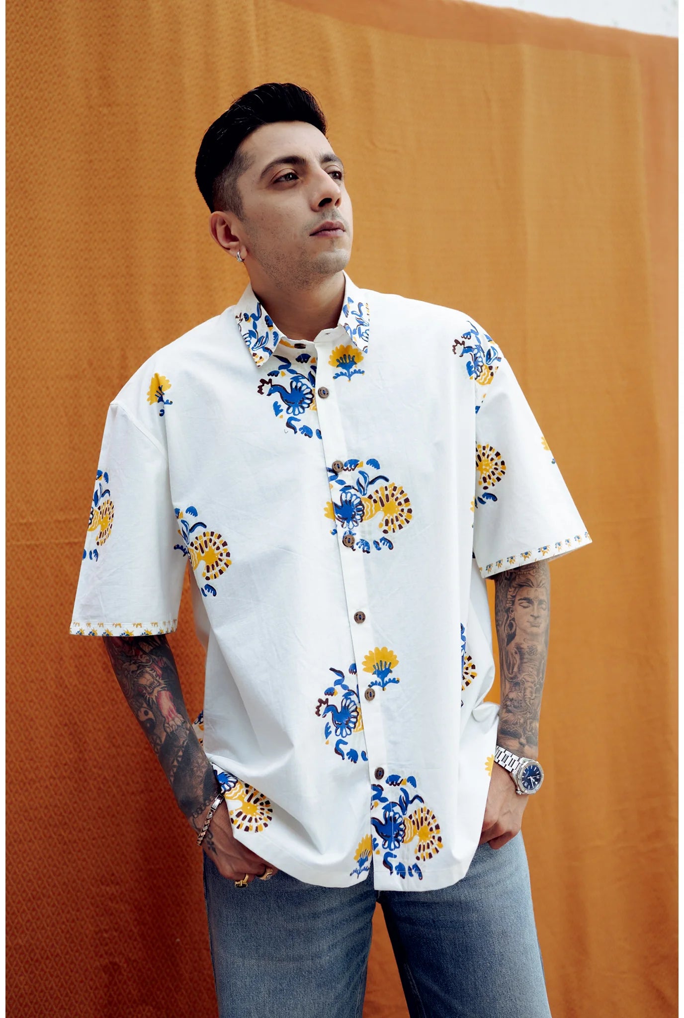 A white shirt you need this summer - the JODI version is crafted in cotton and hand-block printed in bold prints. It features a drop down shoulder with point collar and embroidery details.