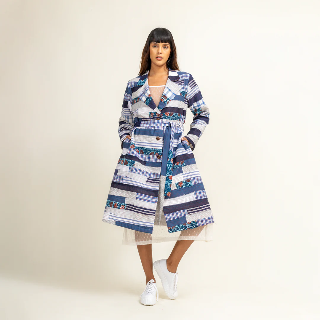 This product is made in Delhi with a fair wage workshop. The workshop specialises in small scale production, where they reduce waste generation and manage factory waste by upcycling scraps into patchwork fabric