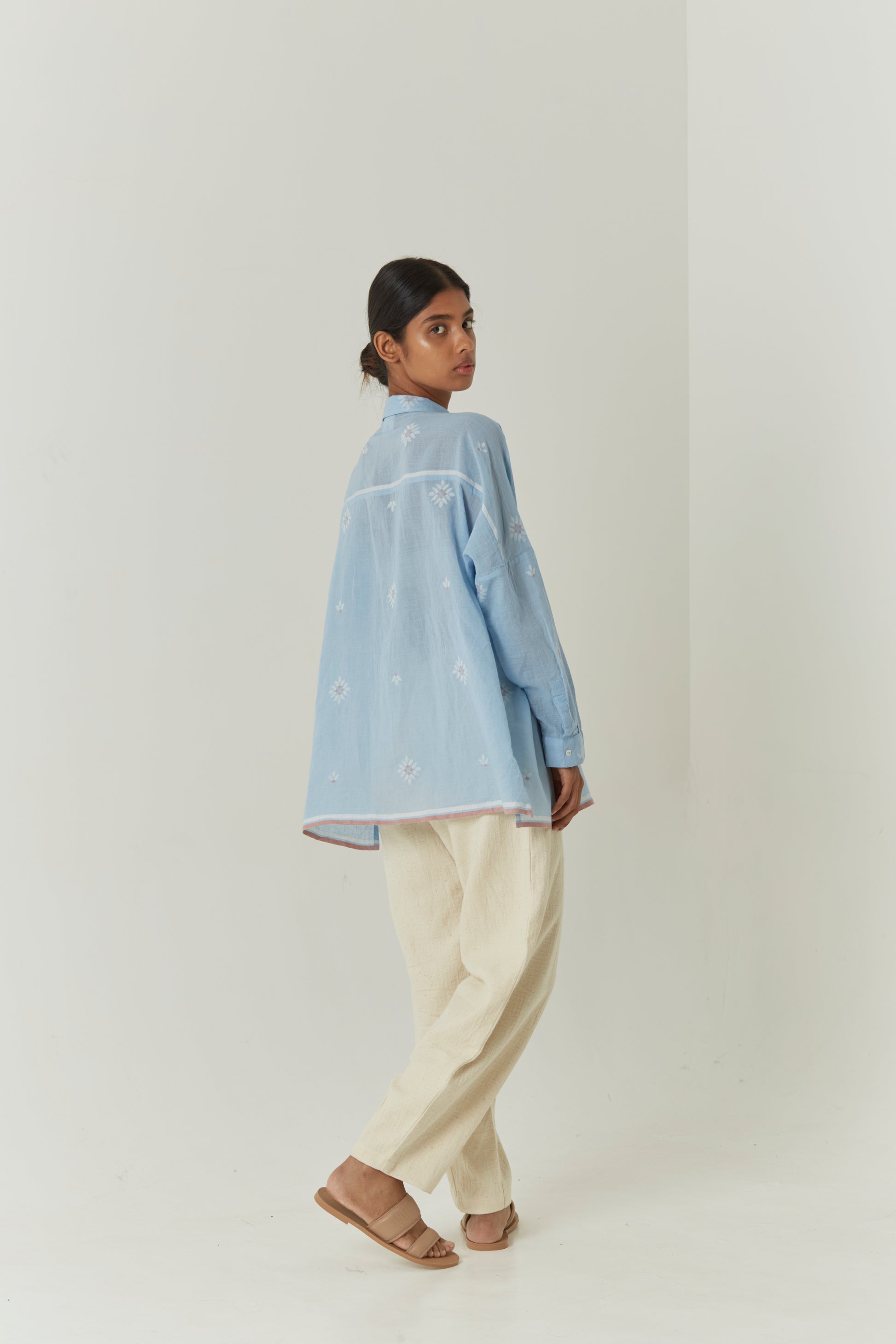 The unique motif of your garment has been crafted by third generation of master Jamdani weavers.This fabric has taken over 14 hours to weave per meter.