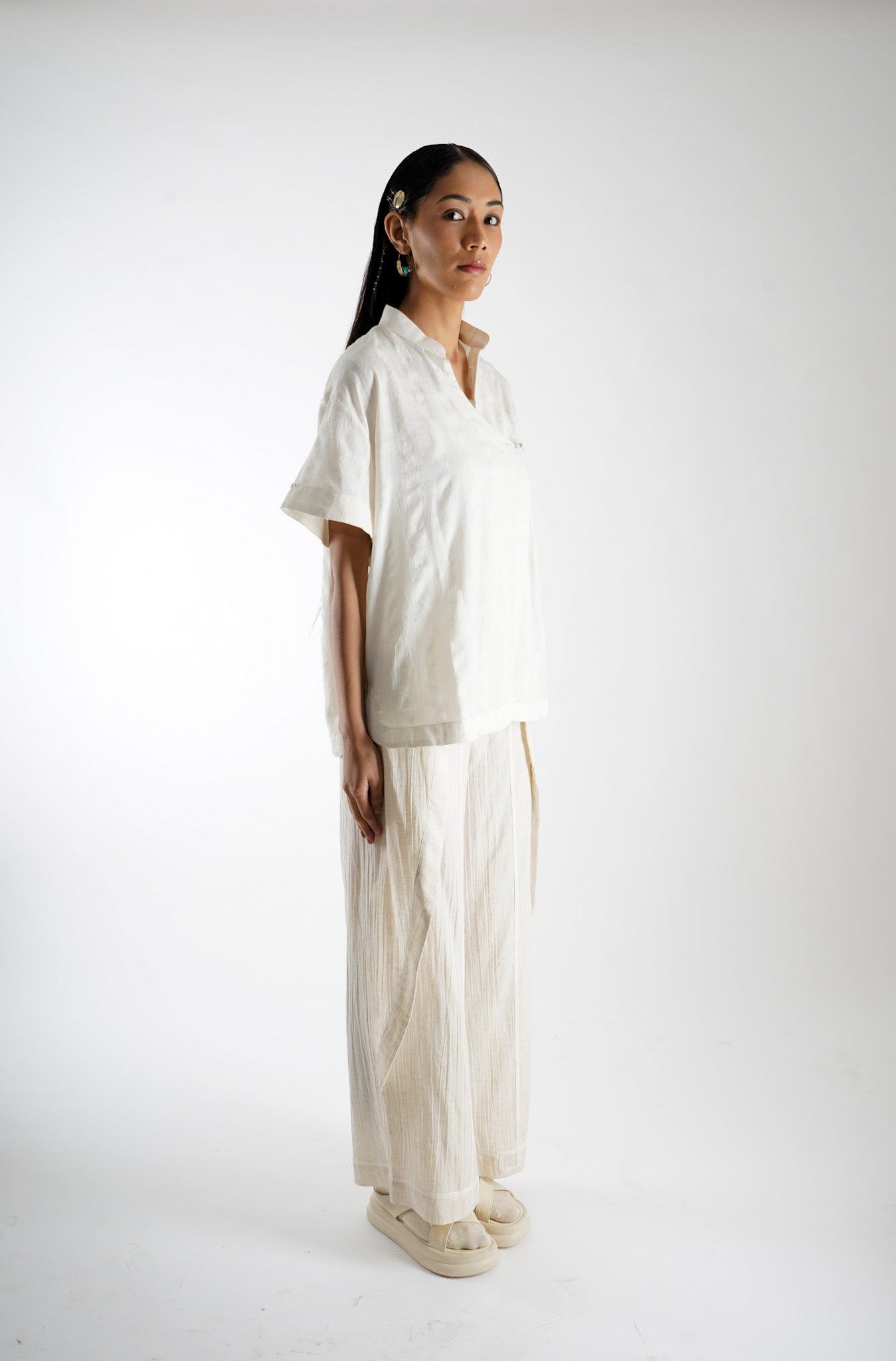 The design of Saldon Summers embraces the organic beauty of handwoven textiles with its self-slubby nature and natural wrinkles. These elements add depth and character to the fabric, giving it a relaxed yet refined appeal. The inherent slubs and gentle creases celebrate the raw, unprocessed charm of handloom craftsmanship, making each piece unique and effortlessly stylish.