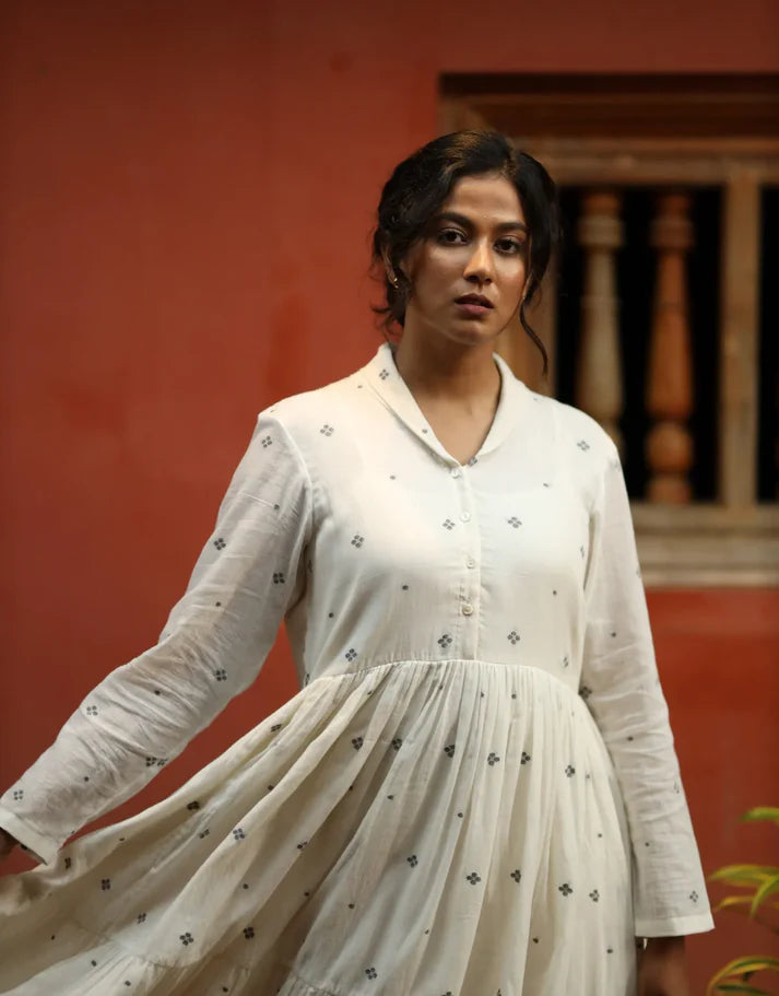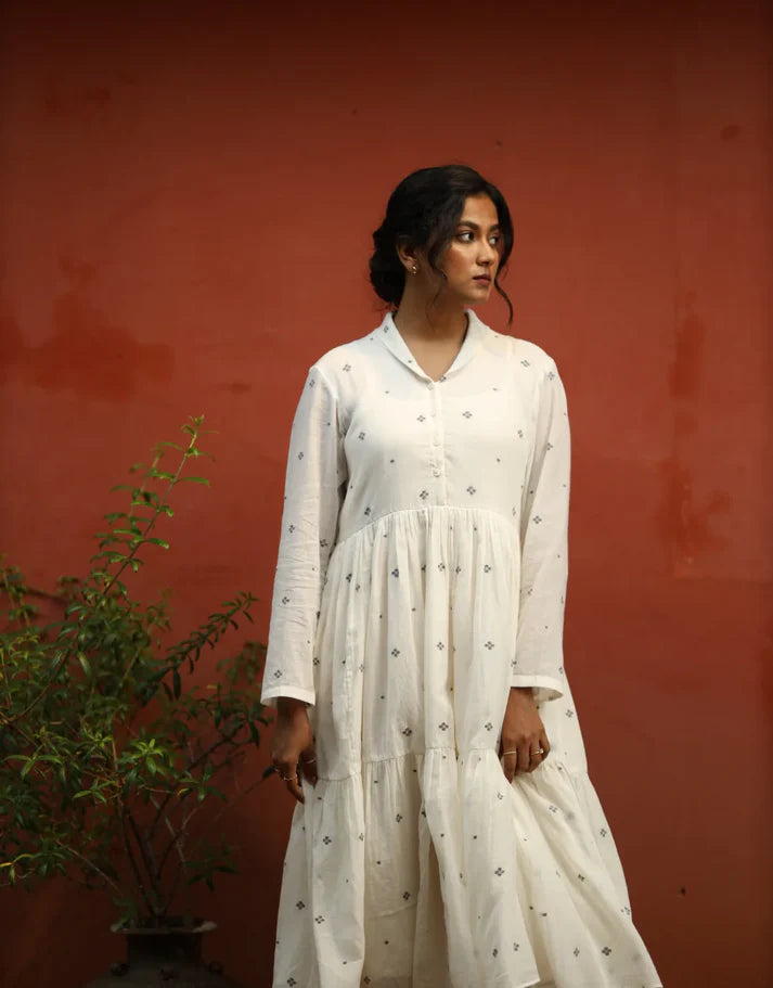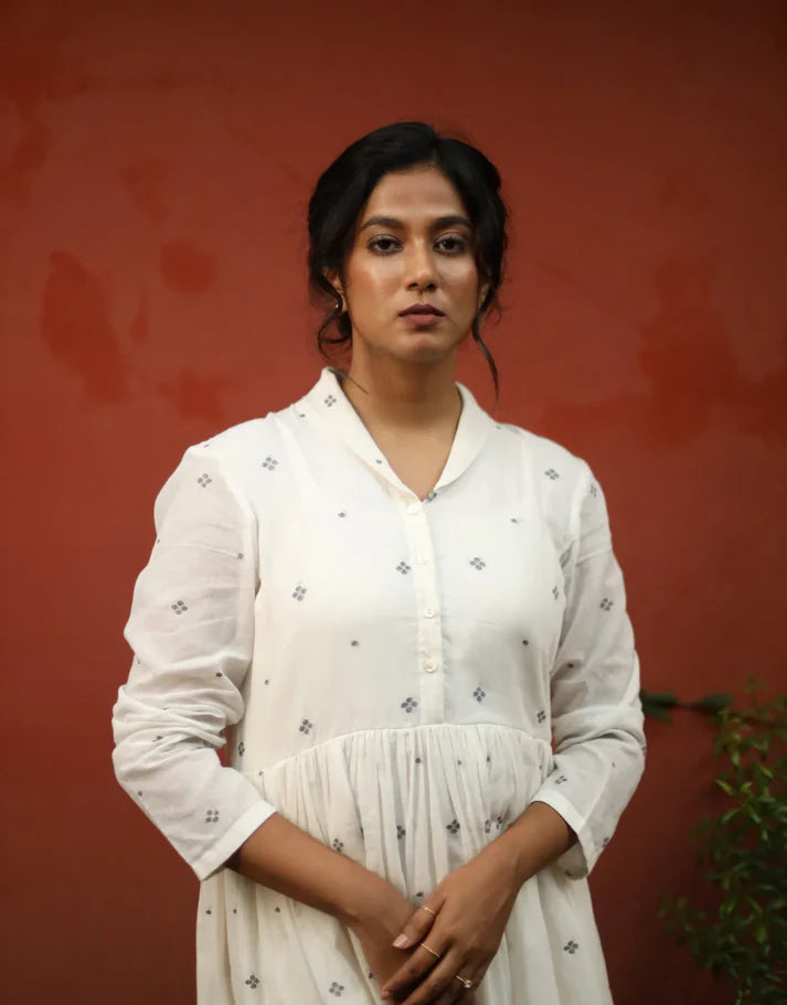 Relaxed fit, Handloom Jamdani cotton dress.