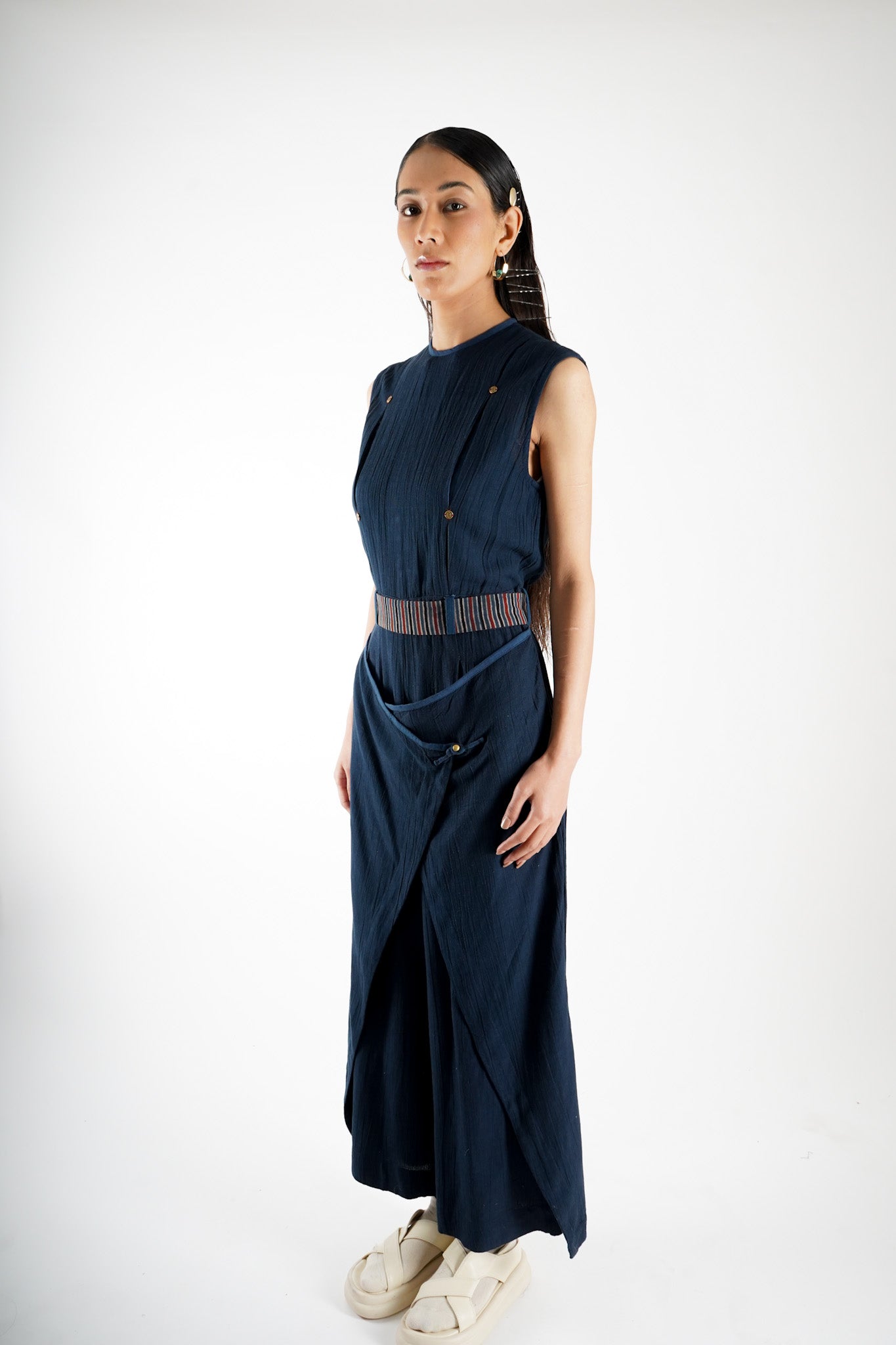 The design of Saldon Summers embraces the organic beauty of handwoven textiles with its self-slubby nature and natural wrinkles. These elements add depth and character to the fabric, giving it a relaxed yet refined appeal. The inherent slubs and gentle creases celebrate the raw, unprocessed charm of handloom craftsmanship, making each piece unique and effortlessly stylish.